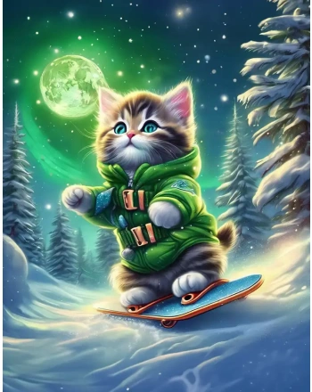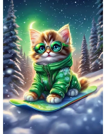 Cat on a snowboard
