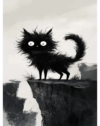 Whimsical black cat on a cliff