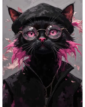 Painting of a black cat with pink fur