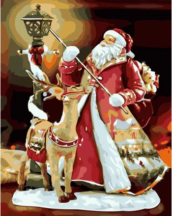 Santa and deer statue painting