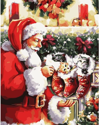 Santa claus and kittens cross stitch kit