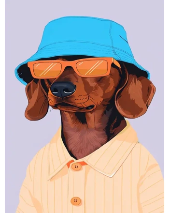 Cool dachshund with blue hat