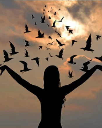 Girl and flying birds