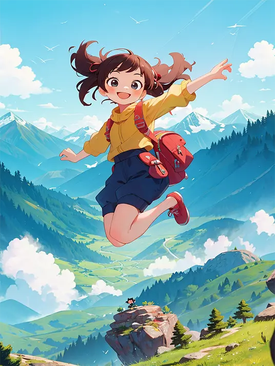 This Anime girl walking with a backpack kit contains all the necessary materials to create your artwork