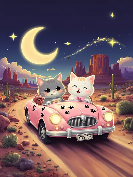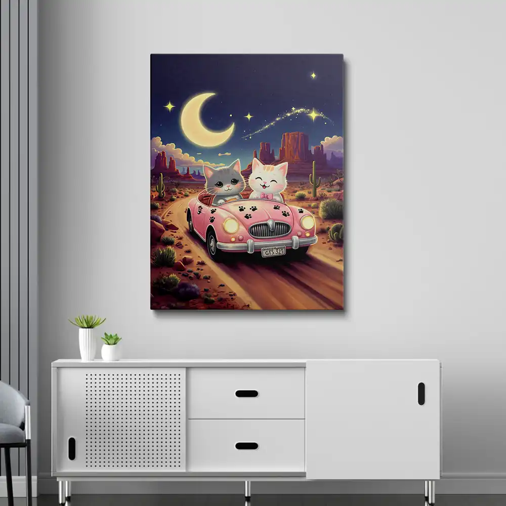 Cats driving a car painting is an awesome way to begin your paint by numbers journey. A journey full of colours that sometimes comes with lots of patience, passion, and planning. But, always with love. And, at the end of the day, it gives you a sense of achievement, which boosts your confidence when you see that "YOU" have made it. So, what are you waiting for? Just place your order and start today.