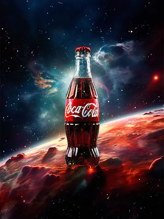Coca-Cola bottle drifting in space