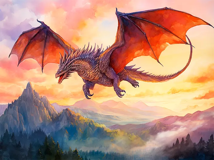 Flying watercolor dragon