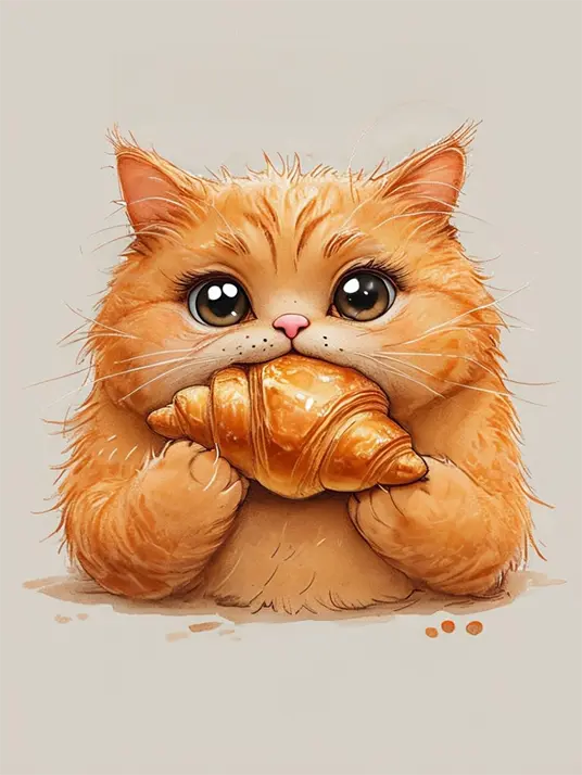 This Ginger cat enjoying croissant kit contains all the necessary materials to create your artwork