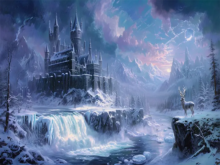This Majestic gothic castle in snowy fantasy landscape kit contains all the necessary materials to create your artwork