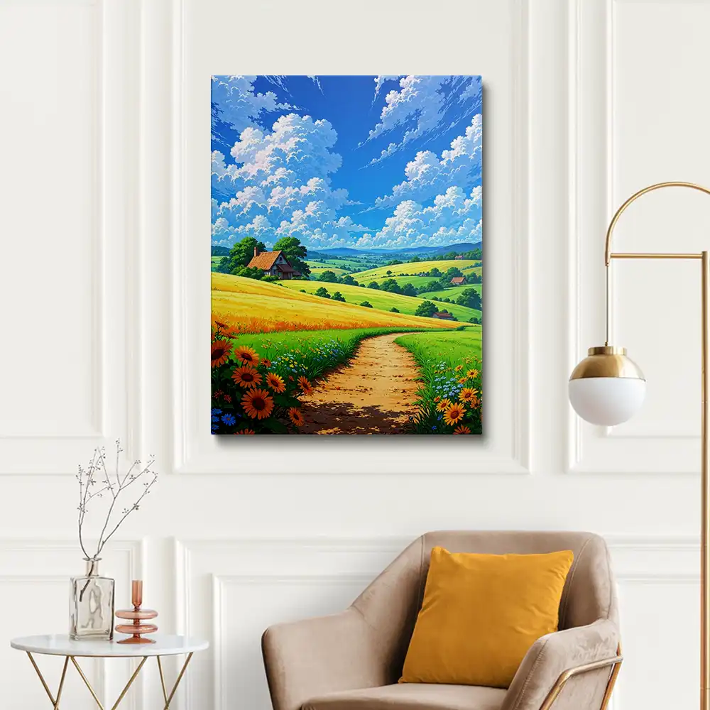 Painting of a field painting is an awesome way to begin your paint by numbers journey. A journey full of colours that sometimes comes with lots of patience, passion, and planning. But, always with love. And, at the end of the day, it gives you a sense of achievement, which boosts your confidence when you see that "YOU" have made it. So, what are you waiting for? Just place your order and start today.