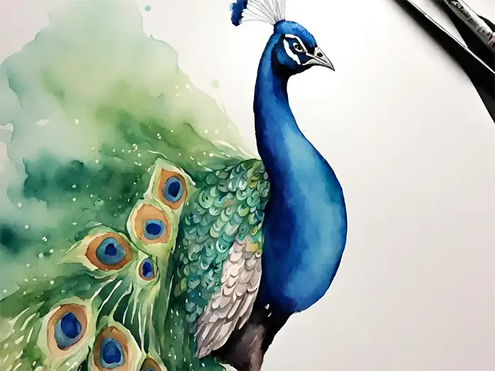 Watercolor painting of a peacock